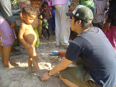 次は物資支援のために村をまわります。 村には、舗装されていない道路、掘っ立て小屋のような家、裸の子供たち・・・。 話には聞いていたものの、それを体験することは衝撃でした。